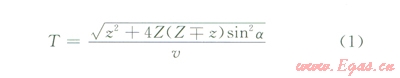 圖2顯示了傾斜地層與直井相交情況下的測井。由傾斜地層產(chǎn)生的反射波按照傳播方向可分為上行反射波和下行反射波。設地層與井的夾角是a,反射波旅行時表達式為: