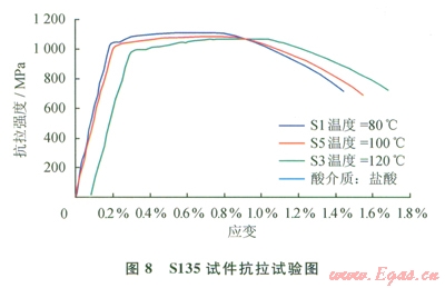 根據(jù)元壩地區(qū)鉆井工程的實(shí)際情況,實(shí)驗(yàn)選用了,S135鋼片、Gl05鋼片作為評(píng)價(jià)對(duì)象。一定溫度情況下評(píng)價(jià)Sl35鋼片、Gl05鋼片在酸化解卡液中腐蝕后強(qiáng)度(抗拉與抗扭)變化情況[12]。
