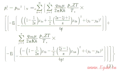 由于水力裂縫的產(chǎn)生,使得地層壓力重新分布。使得地層壓力重新分布。假設(shè)第i條裂縫的左翼和右翼的縫端壓力分別為pflj和pfri。則t時(shí)刻可得第i條裂縫的左翼尖端產(chǎn)生的壓降為: