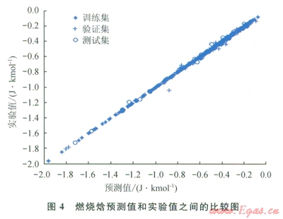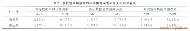 表2中展示了新構(gòu)建燃燒焓和蒸發(fā)焓模型的結(jié)果。從表2中可以看出,經(jīng)過上述處理后,所構(gòu)建的ANN模型在“驗證”集和“測試”集中的預(yù)測表現(xiàn)有所改善。