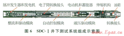 它由渦輪發(fā)電機模塊、電氣短節(jié)、鉆井液分流器、增壓裝置、執(zhí)行機構總成、執(zhí)行機構液壓控制系統(tǒng)、抽吸系統(tǒng)、探測頭、下接頭等主要部件組成。它是基于鉆井液分流提供液壓動力,三點定位井壁保證合適推靠力,以鉆井液脈沖作為下傳信號的測試啟動控制系統(tǒng)(5)。