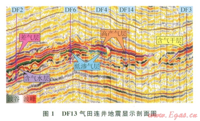 鶯歌海盆地位于南海北部大陸架西北區(qū),該盆地是一個年輕、快速沉降、以海相沉積為主的盆地,異常高溫超壓是其重要特征之一。新近紀(jì)中中新世梅山組一晚中新世黃流組儲蓋組合稱為中深層,該層段埋藏較深,地溫梯度為4.56℃/l00m,壓力高(地層壓力系數(shù)大于l.8),屬高溫超壓區(qū)[8-9],給鉆井工程帶來極大風(fēng)險(xiǎn),使得該領(lǐng)域勘探技術(shù)難度大、資金投入高,勘探風(fēng)險(xiǎn)大。由于鶯歌海盆地中深層的異常溫壓、泥底辟[10]、立體成藏[11]等因素的綜合影響,使得中深層的地震響應(yīng)錯綜復(fù)雜?,F(xiàn)有鉆探資料顯示,DFl3氣田相同的地震反射特征可能對應(yīng)氣層、水層、含氣水層、氣水同層、干層等不同的地質(zhì)情況(圖1),相同物性與厚度的砂體也可能對應(yīng)不同強(qiáng)度的地震反射。分析中深層地震反射錯綜復(fù)雜的其原因包括受淺層氣吸收衰減、泥底辟、蓋層差異、砂體耦合、儲層物性、儲層厚度、流體等因素的影響。因此,需要研究一種方法對著此影響因素逐一分析、消除或剝離,以達(dá)到本區(qū)高溫高壓儲層預(yù)測和含氣性檢測的目的。