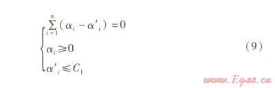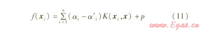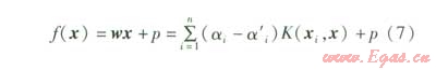 根據支持向理機理論,該非線性函數關系可以用支持向量機對前i-1天實測數據的學習來獲得,其回歸計算公式為: