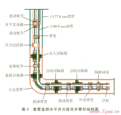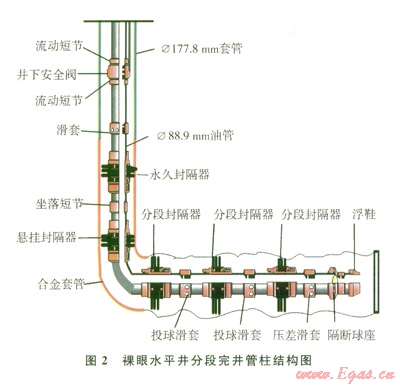 套管完井水平井,采用一趟下入完井管柱,管柱結(jié)構(gòu)見(jiàn)圖l。