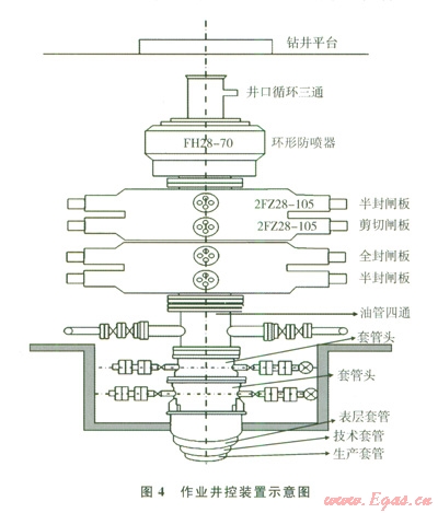 由于裸眼水平井氣層暴露面積大、產(chǎn)能高、作業(yè)井控風(fēng)險(xiǎn)大,井控設(shè)備采用2FZ28-105EE級(jí)液壓(半封+全封)閘板+2FZ28-105EE級(jí)液壓(剪切+半封)閘板+FH28-70EE環(huán)形防噴器的組合配置(圖4)。裸眼井作業(yè)施工可能涉及不同規(guī)格的鉆桿或油管,因此,多增加了一個(gè)環(huán)形防噴器,能保證多種工況條件下發(fā)生溢流或井涌異常時(shí),井口能得到及時(shí)有效的控制。