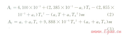 式中Th表示均一溫度,℃;m表示鹽類質(zhì)量摩爾濃度,mol/kg,它與鹽度(叫)的換算公式為:m=1 000ω/[58.5×(100-ω)];al、a2、a3、a4為常數(shù),對(duì)于CaCl2-H20體系來說,al=2.848×101,a2=-6.445×10-2:a3=-4.159×10-1、a4=7.438×10-3。