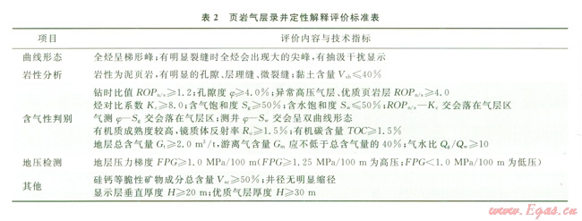 頁巖氣層錄井定性解釋評價(jià)標(biāo)準(zhǔn)見表2