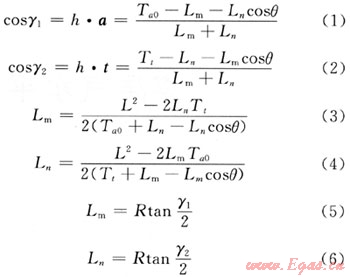 式中L為A1、B1兩點之距,Ta0和Tt分別為A1B1矢量a、t上的投影長度,θ為a、t之間的夾角。由式(1)~(6)求得: