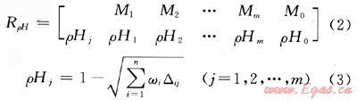 式中RρH為ρ個(gè)事物的H個(gè)模糊特征的復(fù)合物元;Mi為第i個(gè)事物(i=1,2,…,m);wi為第i個(gè)事物評(píng)價(jià)指標(biāo)的熵權(quán);△ij(i=1,2,…,n;j=1,2,…,m)為標(biāo)準(zhǔn)模糊物元R0n與復(fù)合從優(yōu)隸屬度模糊物元
