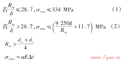 進一步降低壁厚,取值1.30DN,是否經(jīng)歷過最大循環(huán)溫差的運行考驗有待進一步證實。