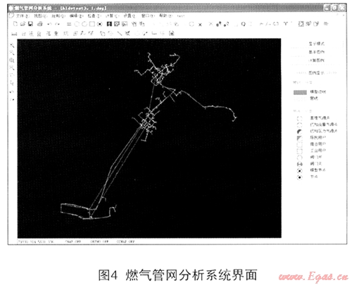 燃?xì)夤芫W(wǎng)分析系統(tǒng)是采用AutoCAD控件組態(tài)成人機(jī)交互平臺(tái),在圖形操作上更加方便、靈活。其主要功能如下: