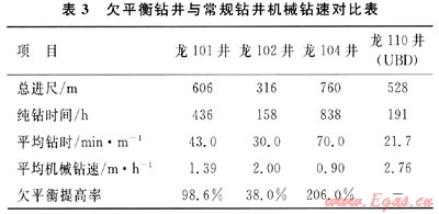 為了進一步說明欠平衡鉆井的提速效果,將欠平衡鉆井與鄰井常規(guī)鉆井的機械鉆速進行對比,結(jié)果見表3。
