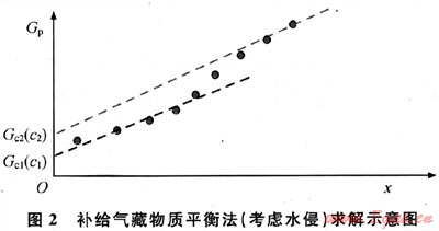 當(dāng)G小于原始地質(zhì)儲(chǔ)量時(shí),說明氣藏的補(bǔ)給量不大,補(bǔ)給氣量并未被采出,對于各個(gè)階段的動(dòng)態(tài)儲(chǔ)量和補(bǔ)給氣量,可以利用重復(fù)線性回歸法求得不同階段的Gc(圖2),圖2中