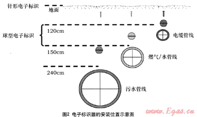 電子標(biāo)識(shí)系統(tǒng)在歐美發(fā)達(dá)國(guó)家已有40多年的使用歷史,白上個(gè)世紀(jì)末以來(lái),在我國(guó)燃?xì)庑袠I(yè)也開始逐步得到應(yīng)用。它不僅可以指示出其埋設(shè)的位置,還可以將內(nèi)部?jī)?chǔ)存的信息,比如提示管道口徑、埋設(shè)時(shí)間、三通彎頭、閥門、周邊建筑物情況等特征點(diǎn)的精確信息發(fā)送給電子探測(cè)儀,有效彌補(bǔ)其它示蹤方式的不足。