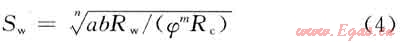 另外,也可用校正后的阿爾奇公式求含水飽和度,效果也較好,其公式為: