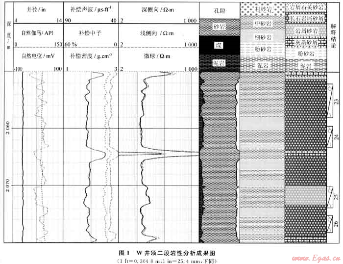 根據(jù)以上測(cè)井響應(yīng)特征并結(jié)合巖心分析資料,可正確識(shí)別儲(chǔ)層巖性(圖1)。