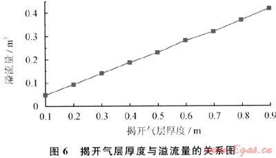 圖6表明,揭開氣層厚度與溢流量存在線性關(guān)系,若發(fā)現(xiàn)溢流后,繼續(xù)鉆進(jìn),溢流量將以累計(jì)的方式增加。因此,在鉆遇氣層發(fā)現(xiàn)溢流后,必須停止鉆進(jìn),防止繼續(xù)揭開氣層,避免溢流過多。
