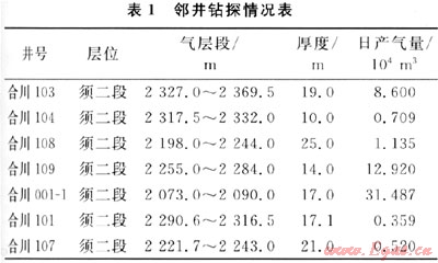 合川X井是一口開發(fā)井,鄰井鉆探情況見表1,鄰井物性參數(shù)見圖4。