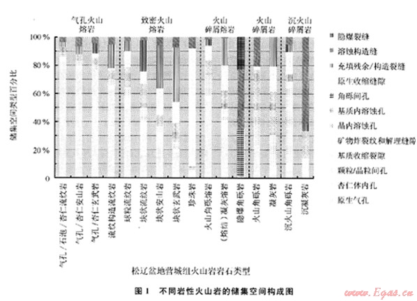 筆者基于前人的研究基礎,統(tǒng)計了松遼盆地營城組火山巖中不同孔縫的面孔率,得出了16種巖性12種亞相的主要儲集空間類型,討論了原??紫逗痛紊紫兜某梢?,對火山巖氣藏的勘探開發(fā)有一定的幫助。