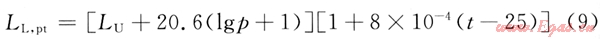 對(duì)于爆炸上限,對(duì)溫度、壓力的綜合作用進(jìn)行修正[7]: