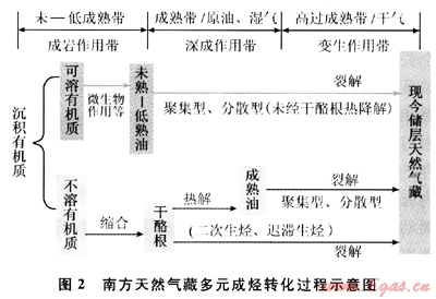 近年來的研究揭示南方、塔里木盆地的多元生烴轉(zhuǎn)化過程,認(rèn)識到干酪根晚期成烴理論模式忽略了可溶有機(jī)質(zhì)對油氣田形成的貢獻(xiàn),已證實再生烴源是中國高演化海相層系油氣富集成藏的重要來源之一,無論分散型還是聚集型都可成為油氣成藏的主要來源,如普光氣田有原油裂解氣的重要貢獻(xiàn)是基本共識。