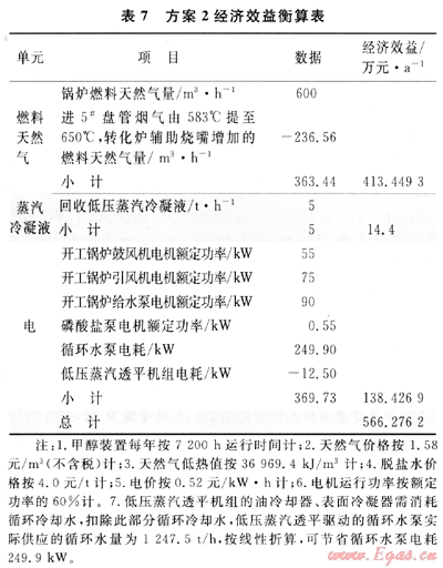 以上2種方案均能解決川西北氣礦甲醇廠自2003年以來(lái)自產(chǎn)蒸汽不能滿足自平衡的問(wèn)題,但著眼于長(zhǎng)期經(jīng)濟(jì)效益來(lái)看,方案2優(yōu)于方案1。因此在投資允許的條件下,建議采用方案2的設(shè)計(jì)來(lái)對(duì)川西北氣礦甲醇廠進(jìn)行優(yōu)化改造。