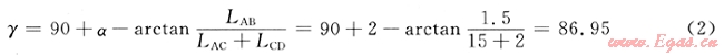 由地震剖面和隨鉆實(shí)測資料,3665m以后該井α為上傾2°,為避免儀器再次碰頂,盡量使井眼軌跡保持在靶體中間,亦即假定鉆頭到層界面距離LCD是2m,本井隨鉆電阻率的探測深度為1.5m,隨鉆測井儀器距離鉆頭LAC=15m,由式(1)計(jì)算的γ為: