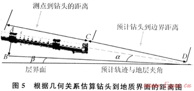 式中LCD表示鉆頭到層界面距離,m;LAB表示隨鉆測井儀器探測深度,m;LAC表示隨鉆測井傳感器到鉆頭距離,m;α表示地層傾角,當(dāng)?shù)貙訛橄聝A時(shí),β=90°-γ-α,當(dāng)?shù)貙由蟽A時(shí),β=90-γ+α(γ是井斜角),(°)。