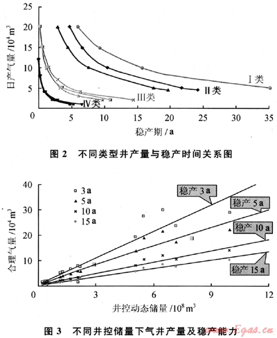 綜合分析徐深氣田試采井的地層系數(shù)、穩(wěn)定產(chǎn)能、單位壓降采氣量等地質(zhì)和動態(tài)特征,對系統(tǒng)試采的井進行了分類評價。綜合單井試采結果,結合不穩(wěn)定試井以及數(shù)值試井方法,建立了開發(fā)早期單井合理產(chǎn)量與穩(wěn)產(chǎn)能力關系圖版,確定氣井初期產(chǎn)能、落實合理產(chǎn)量(圖2、3)。
