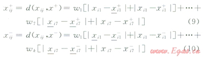 x(ij)+、x(ij)-分別為7個指標區(qū)間變化范圍的最大、最小值;