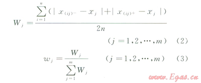 最后,對各指標的變異系數(shù)歸一化處理,計算指標權重(wj):