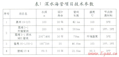 管道運(yùn)輸是油氣運(yùn)輸?shù)闹饕椒ㄖ?,具有連續(xù)、快捷、安全、經(jīng)濟(jì)的特點(diǎn)。隨著海上油氣田的不斷開(kāi)發(fā),管道運(yùn)輸工藝被廣泛應(yīng)用,它將海上油氣田、儲(chǔ)運(yùn)設(shè)施或陸上處理終端連接成一個(gè)有機(jī)的整體,形成相互關(guān)聯(lián)相互協(xié)調(diào)的生產(chǎn)操作系統(tǒng)。深水油氣資源一般遠(yuǎn)離陸地,不但開(kāi)發(fā)成本高而且維修非常困難,為了提高經(jīng)濟(jì)性一般深水海底管線的設(shè)計(jì)壽命都比較長(zhǎng),對(duì)防腐要求較高。