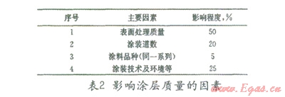 表面處理的好壞對(duì)涂層質(zhì)量影響很大,有學(xué)者研究過(guò)影響涂層質(zhì)量和壽命的各種因素,結(jié)果如表5所示[1],顯然表面處理的質(zhì)量是對(duì)涂裝質(zhì)量影響最大的因素。在海管節(jié)點(diǎn)的防腐施工中表面處理也非常關(guān)鍵,為了保證防腐效果必須對(duì)鋼表面進(jìn)行噴砂處理,達(dá)NSa25級(jí)以上。