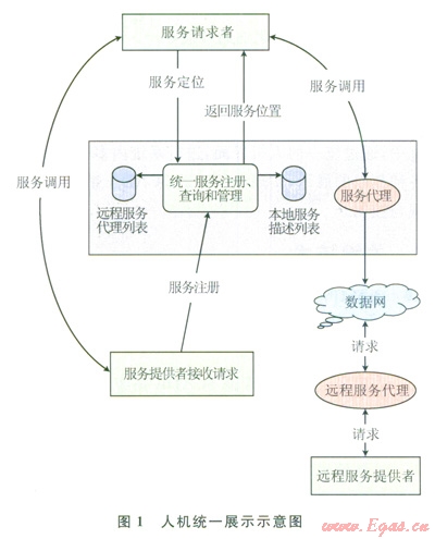 人機(jī)界面中的應(yīng)用以插件方式集成到系統(tǒng)中,控制臺(tái)負(fù)責(zé)實(shí)現(xiàn)界面集成管理功能。人機(jī)應(yīng)用通過(guò)服務(wù)接口層的服務(wù)代理與后臺(tái)服務(wù)進(jìn)行交互,服務(wù)代理提供了訪問(wèn)后臺(tái)服務(wù)的接口,其主要功能是接收人機(jī)應(yīng)用的服務(wù)請(qǐng)求并將請(qǐng)求通過(guò)服務(wù)總線發(fā)送給后臺(tái)服務(wù),然后接收服務(wù)應(yīng)答并返凹給人機(jī)應(yīng)用。服務(wù)代理屏蔽了訪問(wèn)服務(wù)的細(xì)節(jié),使應(yīng)用元需關(guān)心服務(wù)的具體部署信息以及訪問(wèn)過(guò)程,因此有很好的服務(wù)訪問(wèn)透明性。
