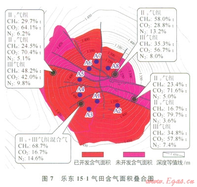 樂東l5-1氣田被一系列放射性斷層分割成多個斷塊,每個斷塊天然氣組分差異較大,CO2具有明顯的分層分塊特點,含量l7.6%~79.7%。因此,氣田在滿足下游對組分的需求情況下,單井如何合理配產(chǎn)是氣田動態(tài)監(jiān)測的難點之一。
