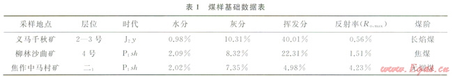 分別在河南省義馬市千秋礦井、焦作市中馬村礦井和山西省柳林縣沙曲礦井采集新鮮煤樣,進(jìn)行工業(yè)分析與反射率測(cè)試(1)