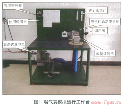 為此,工作人員提出了自行設(shè)計(jì)制造燃?xì)獗砟M運(yùn)行工作臺(tái)的方案,工作臺(tái)南旋渦式真空泵、智能變頻器、轉(zhuǎn)子流量計(jì)、調(diào)壓閥、硅膠墊及不同口徑氣管等組成,共有兩路氣源:一路來(lái)自旋渦式真空泵,流量能達(dá)到(0190)m3h,;另一路空氣壓縮機(jī),通過(guò)減壓閥將0.75MPa的氣壓降到0.05MPa,末端安裝兩個(gè)轉(zhuǎn)子流量計(jì),將流量控制在(0.0160.4)m3。