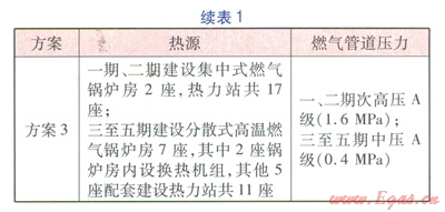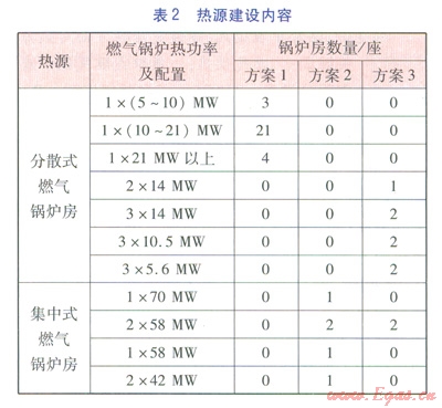一般而言,熱源方案的確定是以“保障供熱安全,技術工藝合理,工程投資經(jīng)濟,環(huán)保效益突出”為原則,從區(qū)域總體規(guī)劃及大氣污染治理的總體要求出發(fā),從技術、經(jīng)濟、工程實施可行性等多角度進行比選。針對本工程的區(qū)域特點,在常規(guī)的比選條件的基礎上,結合總體規(guī)劃的分期開發(fā)要求,提出了3種熱源方案進行比選(見表l),3種方案均采用分期建設方式。