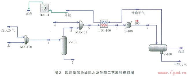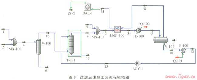 圖5為采用HYSYS軟件對改進(jìn)后注醇工藝流程模擬示意圖。