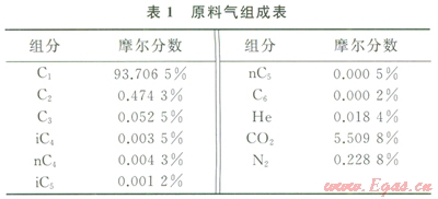 1)原料氣組分含量(表1)。
