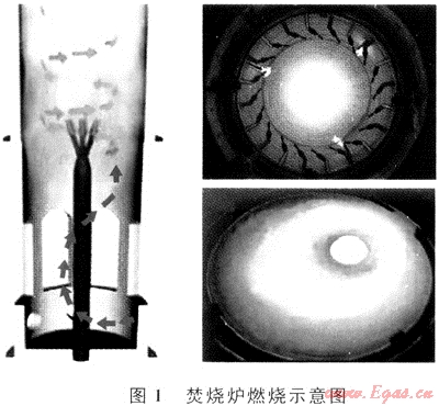 焚燒爐的工作原理是將原料氣引入燃燒器產(chǎn)生高速渦流,通過自然吸入空氣,使燃料氣和氧氣在爐內(nèi)充分混合、燃燒,爐膛排出氣體以較高的速度沖高、向大氣擴(kuò)散,減少高含硫氣井測(cè)試過程中對(duì)環(huán)境和人員的危害[1~2]。圖1為焚燒爐爐膛燃燒示意圖。