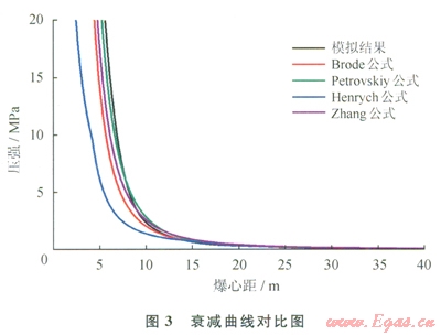 1)本文模擬過程中沖擊波荷載的峰值和衰減曲線與4種經(jīng)驗公式基本一致,滿足工程精度要求。