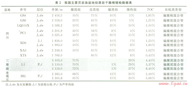 藻類勃發(fā)就是浮游藻類在一定條件和時(shí)期形成單屬種的極度生長和富集,具有強(qiáng)烈的排他性。浮游藻類分布極其廣泛,地球表面只要有水的地方,一般都有其蹤跡。藻類勃發(fā)在現(xiàn)代海洋和湖泊往往呈現(xiàn)季節(jié)性,主要類型為硅藻、顆石藻和溝鞭藻等[20]。影響藻類勃發(fā)的因素主要有光照、水溫、營養(yǎng)鹽供給、pH值和溶解氧等,其中前3個(gè)因素最為重要[21-23]。藻類勃發(fā)能在短時(shí)間內(nèi)產(chǎn)生大量有機(jī)質(zhì)聚集,具有極高的生產(chǎn)力,其直接后果是形成藻類沉積紋層。我國主要優(yōu)質(zhì)烴源巖均發(fā)現(xiàn)藻類富集,如渤海灣盆地古近系沙河街組油頁巖中保存有大量層狀藻類體、結(jié)構(gòu)藻類體和藻屑體,且地球化學(xué)分析表明藻類是原油的直接來源[24];鄂爾多斯盆地上三疊統(tǒng)長7段油頁巖的有機(jī)質(zhì)來源以藻類為主,陸源高等植物等貢獻(xiàn)十分有限[25];松遼盆地上白堊統(tǒng)青一段湖相富有機(jī)質(zhì)泥頁巖以藻類為有機(jī)質(zhì)主要來源[26];四川盆地下志留統(tǒng)龍馬溪組產(chǎn)氣頁巖也以藻類為主要生烴來源。筆者等對我國主要致密油產(chǎn)層的烴源巖進(jìn)行了取樣分析,發(fā)現(xiàn)致密油普遍高產(chǎn)的準(zhǔn)噶爾和三塘湖盆地的蘆草溝組烴源巖有機(jī)質(zhì)類型以偏腐泥混合型為主,藻類占主導(dǎo)的腐泥組含量較高,一般大于65%;而致密油普遍低產(chǎn)的四川盆地下侏羅統(tǒng)烴源巖有機(jī)質(zhì)類型以偏腐殖混合型為主,腐泥組含量偏低,一般小于30%(表2)。