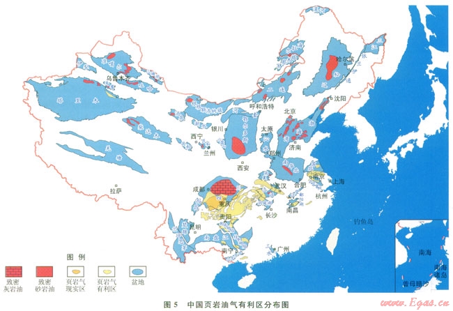 綜合分析認(rèn)為:我國四川盆地及其周邊構(gòu)造相對穩(wěn)定,地表?xiàng)l件良好,下寒武統(tǒng)筇竹寺組、上奧陶統(tǒng)五峰組和下志留統(tǒng)龍馬溪組頁巖,均發(fā)現(xiàn)火山灰層,有機(jī)質(zhì)豐度高、含氣量較高、埋深適中(1000~4500m),為海相頁巖氣現(xiàn)實(shí)勘探領(lǐng)域。我國西部準(zhǔn)噶爾、三塘湖等盆地的中二疊統(tǒng),中部鄂爾多斯盆地上三疊統(tǒng),北部酒泉、銀額、民和、二連、海拉爾等盆地的侏羅—白堊系、東部松遼、渤海灣、南華北、蘇北、江漢等盆地的白堊系和古近系,火山灰層發(fā)育,有機(jī)質(zhì)豐度高,埋深適中(1000~4000m),為頁巖油(致密油)有利勘探領(lǐng)域(圖5)。
