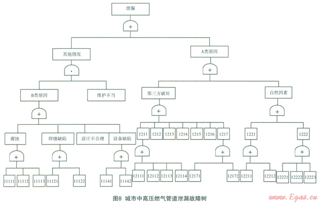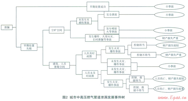 本文搜集了近年來(lái)百余例城市中高壓燃?xì)夤艿佬孤┦鹿?,利用事件?shù)的方法分析了城市中高壓燃?xì)夤艿腊l(fā)生泄漏后事故發(fā)展場(chǎng)景,利用故障樹(shù)分析方法對(duì)城市中高壓燃?xì)夤艿罏?zāi)害性事故原因,以及城市燃?xì)夤艿朗鹿实慕禐?zāi)因素進(jìn)行了分析,提出了城市中高壓燃?xì)夤艿里L(fēng)險(xiǎn)分析中降災(zāi)因子模型。