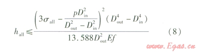 式(7)可作為當(dāng)塌陷區(qū)地面出現(xiàn)沉降時,判定發(fā)生彎曲變形管段是否穩(wěn)定的判別式,也可作為計算塌陷區(qū)允許沉降量的計算式。