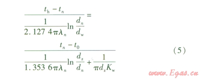 Kw——從絕熱層外表面至保護層外側空氣之間的傳熱系數(shù),W/(m2·K),為11.6 W/(m2·K)