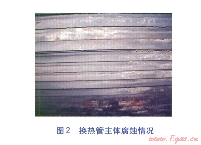 按單純改善換熱管材質考慮,當換熱管采用20號鋼時,一組管箱(整體焊接的固定管箱式結構)的制造安裝費用為2.85×104元。當換熱管采用ND鋼時,一組管箱(整體焊接的固定管箱式結構)的制造安裝費用為6.96×104元。后者的制造安裝費用為前者的2.44倍,但使用壽命并未明顯延長,最長為5~10個月。