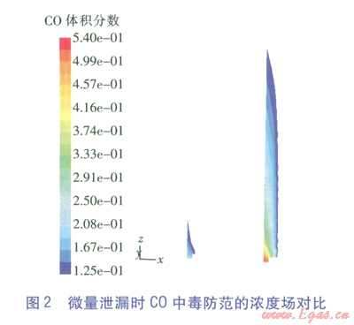 值得一提的是,火災防范時只將爆炸極限列為危害區(qū)間,這符合不發(fā)生明火時的氣體冷態(tài)擴散情況,但一旦發(fā)生燃燒,C0的濃度場將發(fā)生極大變化,還將產(chǎn)生對人員窒息的煙氣。FLUENT作為一款功能強大的軟件,也能模擬燃燒情況(俗稱熱態(tài)研究),但這將大大增加參數(shù)設定的復雜性和計算過程冗時性,這是工程計算力求避免的,但應是理論研究的改進方向。