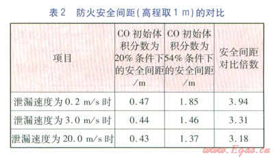 鎮(zhèn)燃氣設計規(guī)范》對CO體積分數(shù)的規(guī)定。采用FLUENT軟件模擬,以GB50028-2006規(guī)定的安全間距(即原安全間距)為參照,采取安全間距倍數(shù)修正的方法實現(xiàn)原安全間距的適用延續(xù)性。將原安全間距分別提高到2倍和4倍能滿足GB50028-2006對中毒和防火危害的防范。